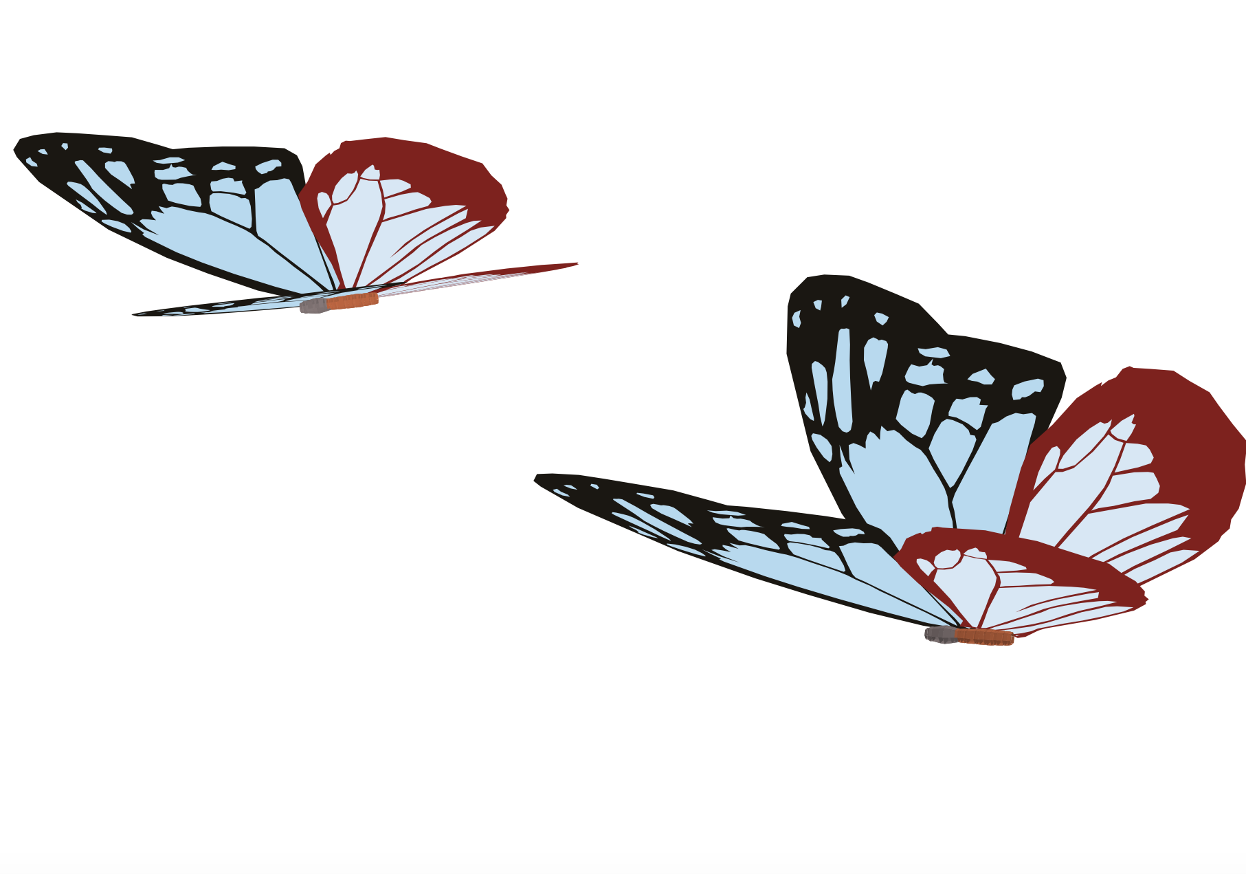 アサギマダラという優雅な蝶を写真からトレースし、三次元で羽ばたいたり移動したり向きを変えたりするようにしました。