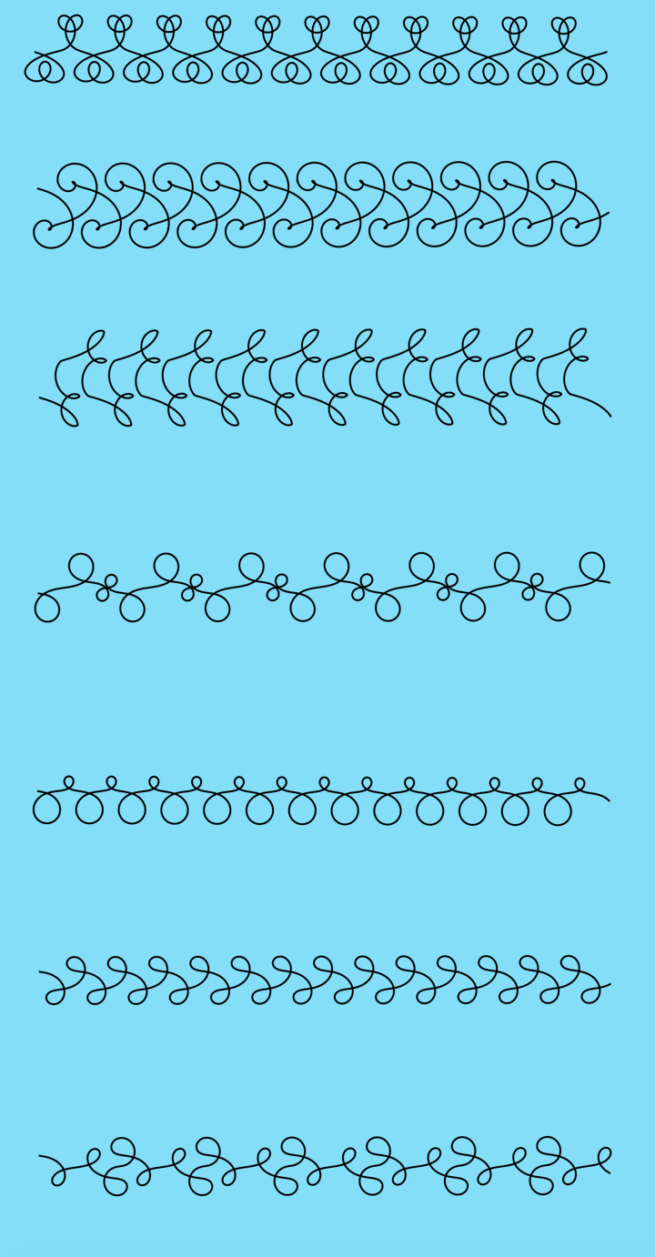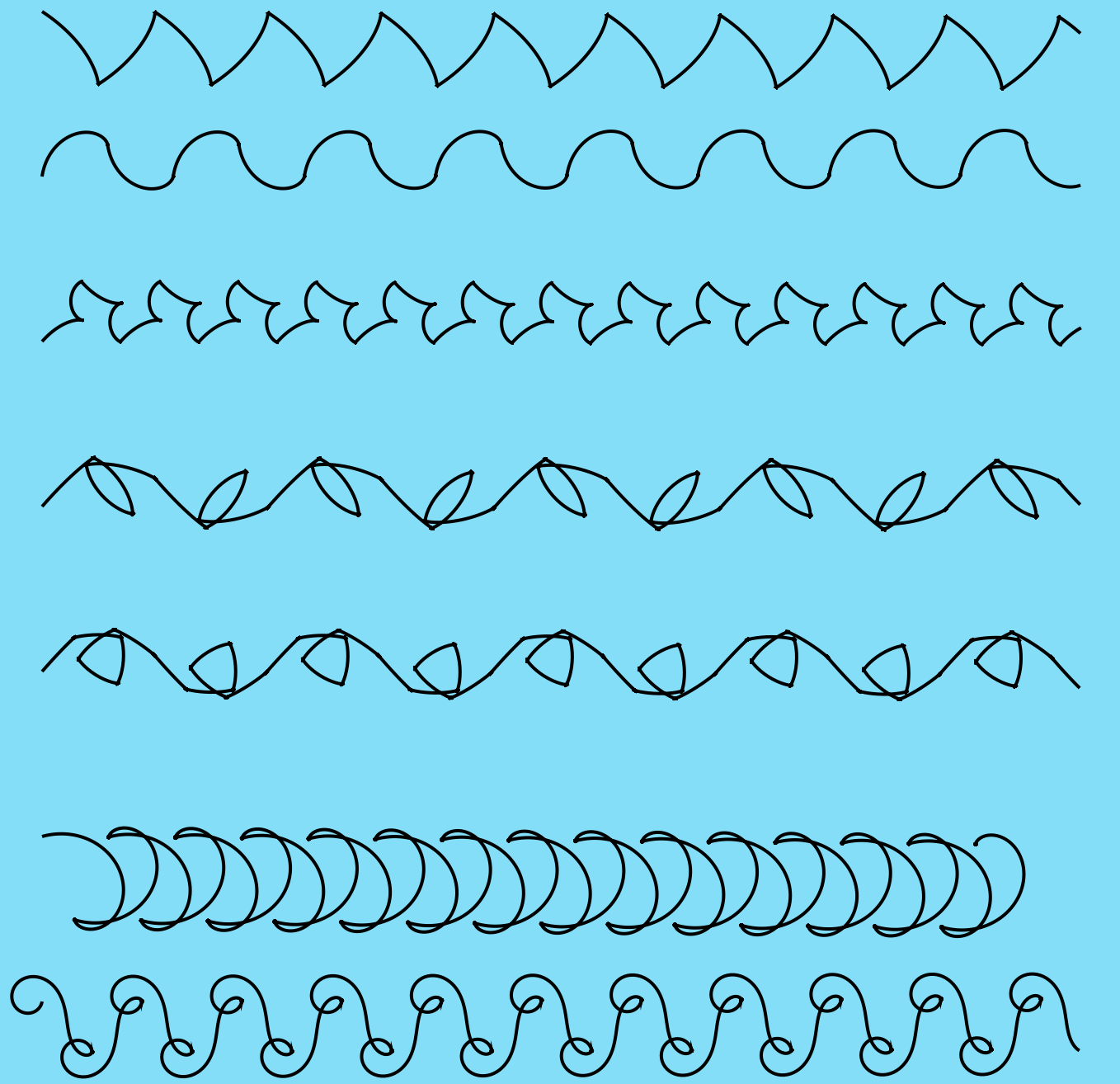 MyLine関数の4つの引数の組み合わせを変えると実にいろんな形の図柄が出てきます。