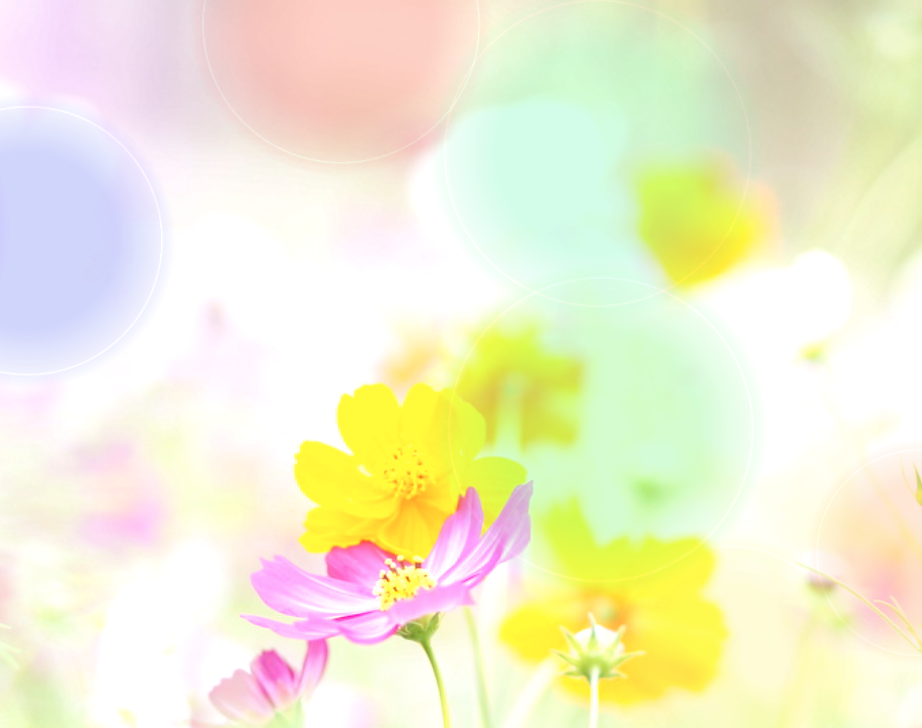 コスモスの話にパステルカラーの淡い光が蛍のように明滅するデザインです。