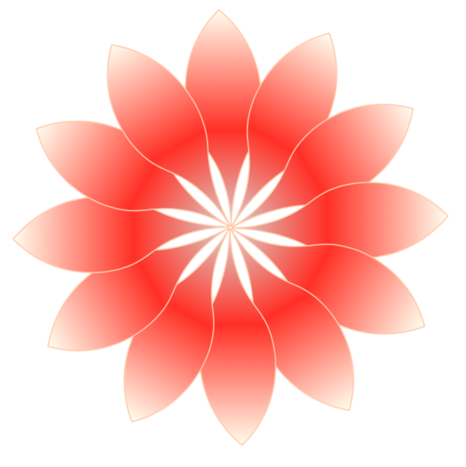 花弁のパスは固定し、付け根のところを回転の原点として、30度ずつ回転させています。