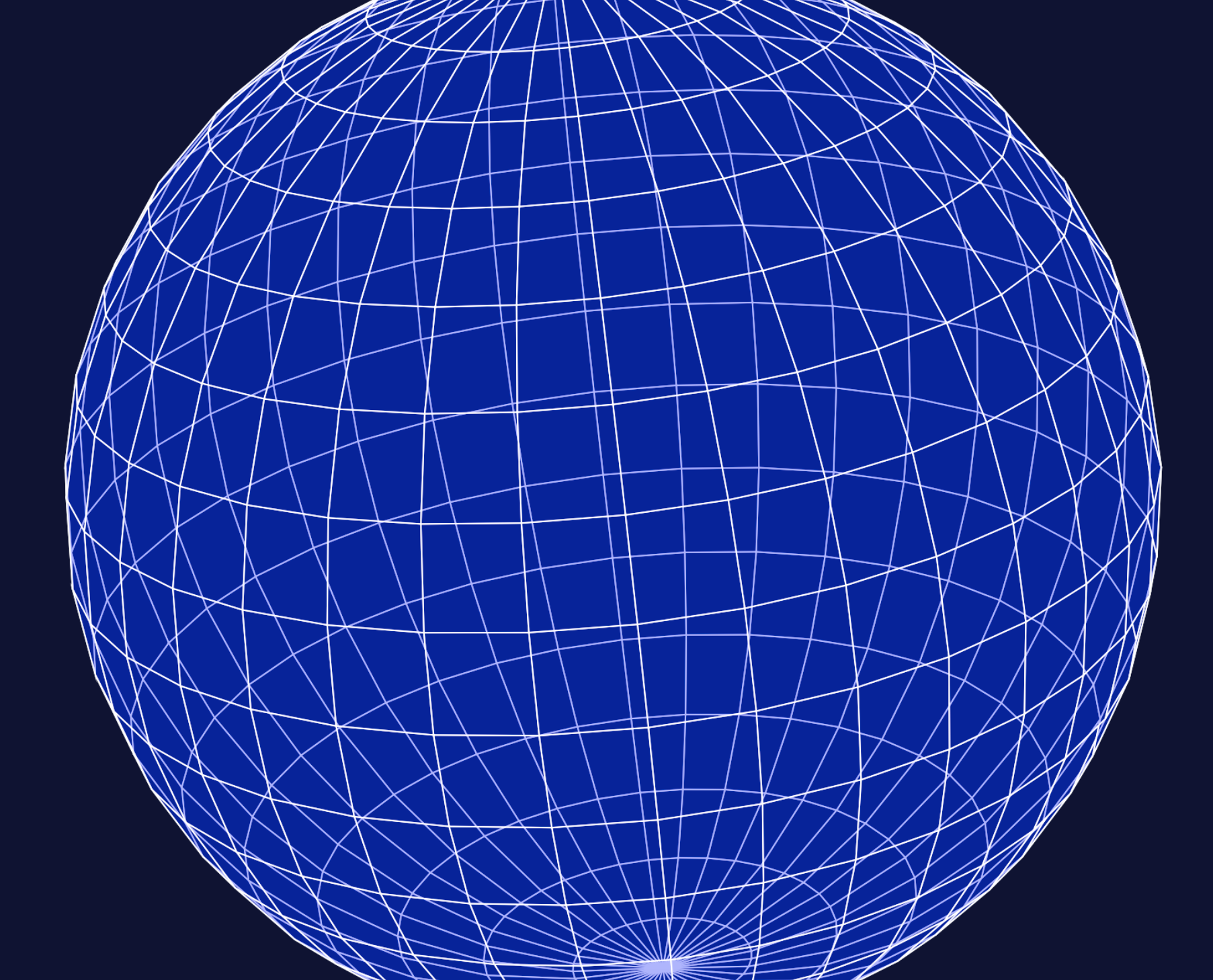 地球を10度ごとの緯線と罫線で表し、アニメーションにより回転させ、カメラを移動させました。